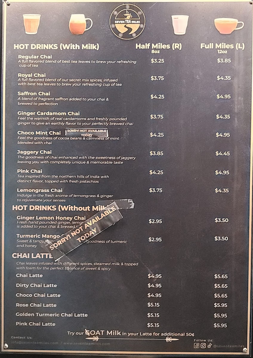 Seven Tea Miles Menu